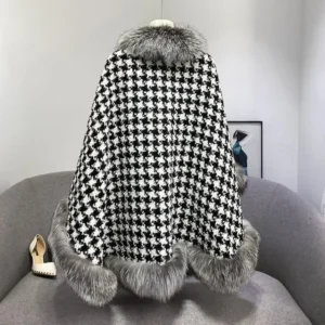 Women’s Houndstooth Shawl Outerwear – Double-Sided Vintage Cloak Jacket